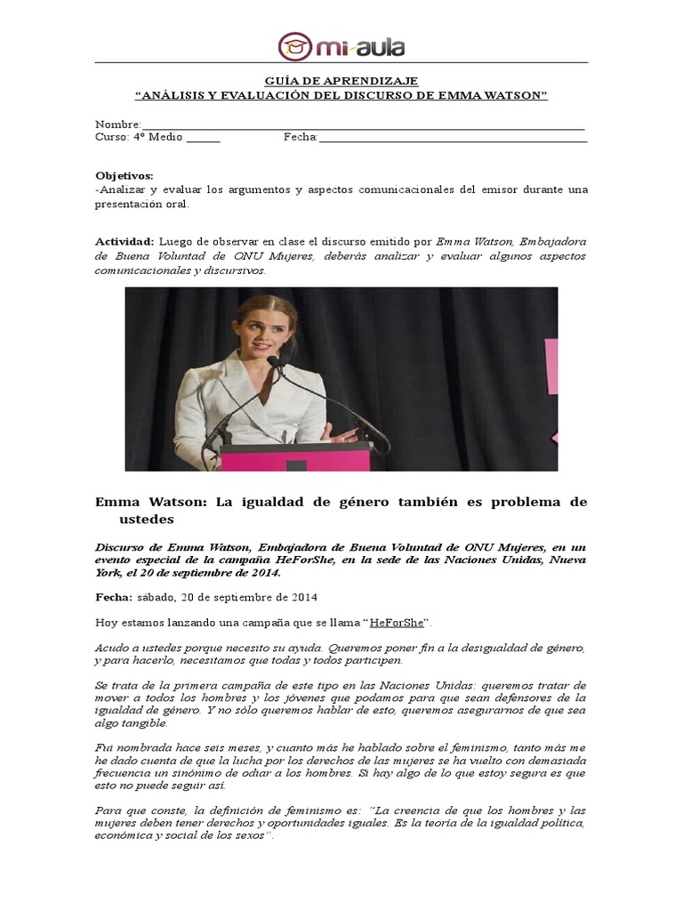 Guia Analisis Y Evaluacion Del Discurso De Emma Watson 75039